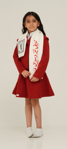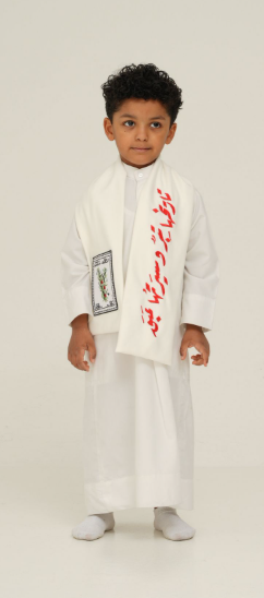 A refined white scarf embroidered with Bahraini postage motif, symbolizing pride, connection, and national heritage.