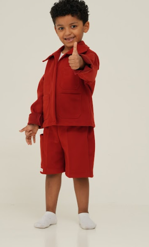 An ode to Bahrain’s timeless pride and heritage. The Bahraini Classic Set features a tailored red jacket and matching shorts, blending comfort and sophistication in the kingdom’s national color.