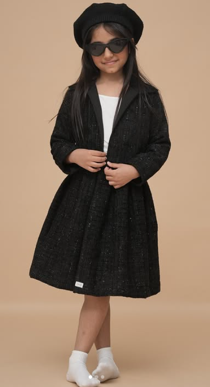 Elegant and timeless, the Noir Set features a beautifully tailored jacket paired with a matching pleated skirt — both crafted from rich black tweed. Designed for sophistication and comfort, it’s the perfect ensemble for stylish winter outings or special occasions.