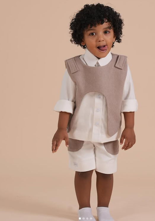 A stylish two-piece featuring a soft beige overlay vest paired with crisp white shorts and a classic shirt. Designed with comfort and structure in mind, it blends minimal elegance with a modern twist — perfect for both casual and dressy moments.