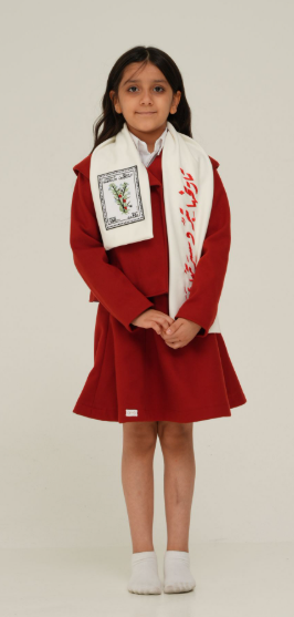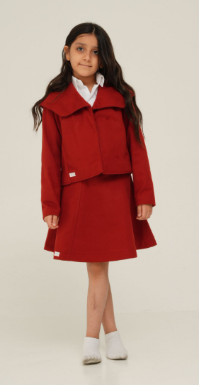 A celebration of Bahrain’s timeless pride and sophistication. The Bahraini Elegance Set features a tailored red jacket paired with a structured skirt, designed in the kingdom’s iconic hue to honor Bahrain National Day.